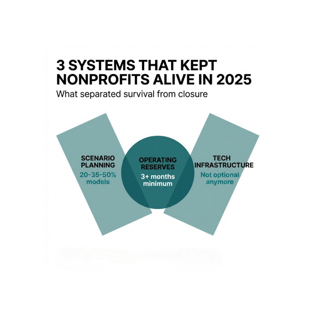 According to the Nonprofit Finance Fund, only 34% of nonprofit organizations maintain formal scenario planning frameworks. The organizations demonstrating resilience in 2025 modeled revenue contraction scenarios of 20%, 35%, and 50%. They conducted stress testing of budget models against increased program demand projections. They identified which programs demonstrated scalability potential and which required temporary suspension during financial constraint periods.